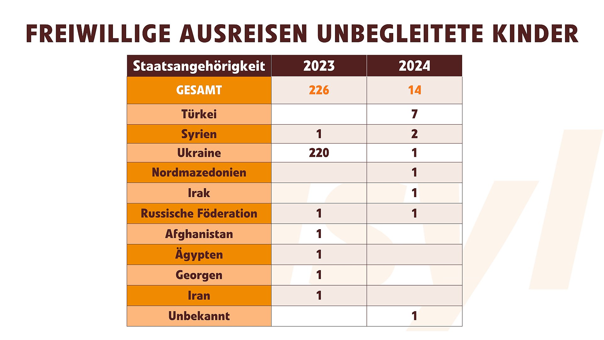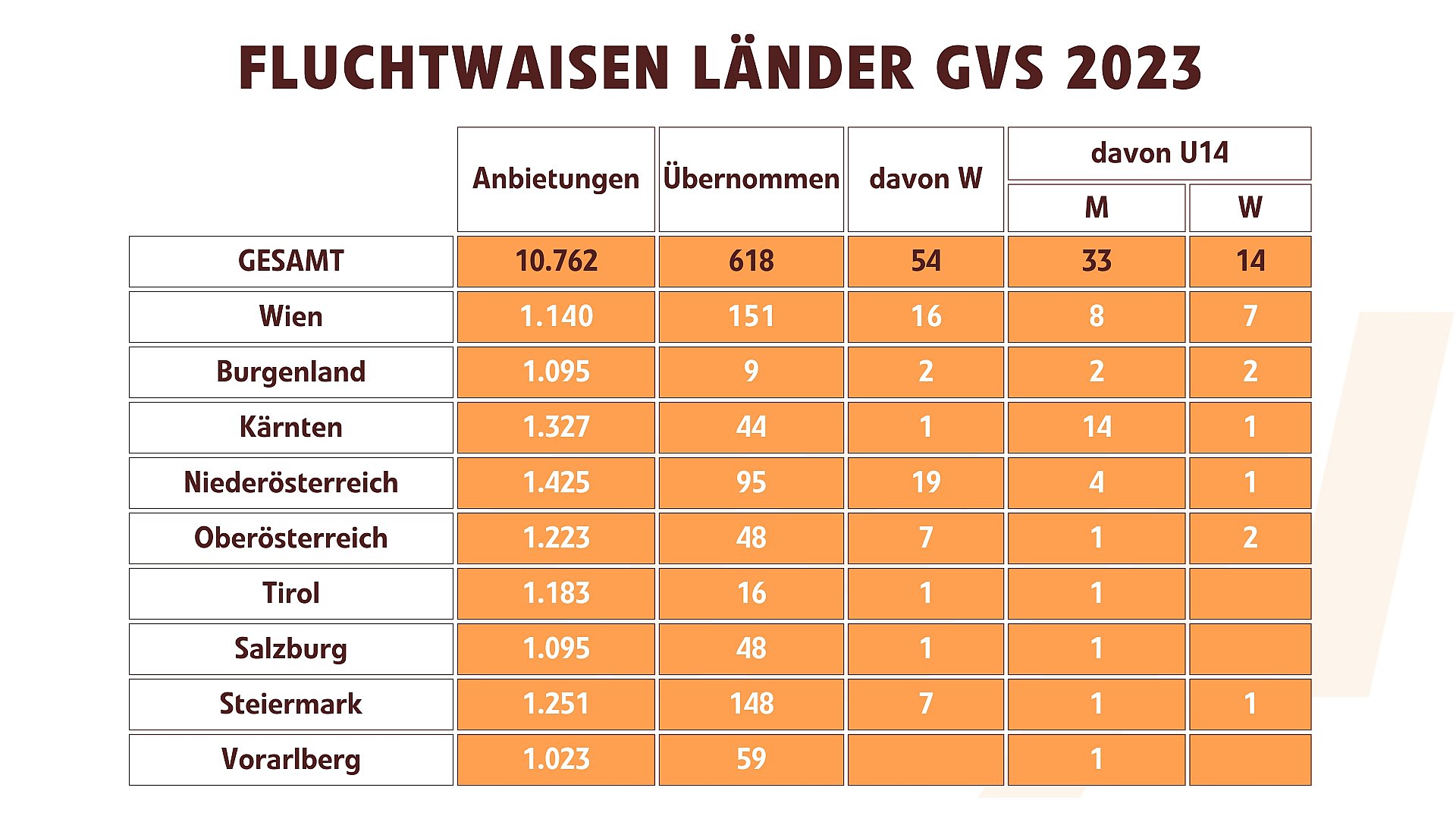 Home | Information | Statistiken & Gesetze | Statistiken | Statistiken zu Fluchtwaisen
