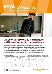 Die Grundversorgung umfasst Unterbringung und Verpflegung sowie ein monatliches Taschengeld. Details entnehmen Sie dem Informationsblatt asylKOORDINATEN Grundversorgung